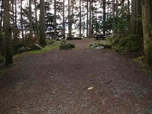 From the cruise ship terminal on South Franklin Street in downtown Juneau, head northwest along the waterfront. South Franklin Street becomes Marine Way, then Egan Drive, named for William A. Egan (1914 - 1984), first governor of the State of Alaska. Egan Drive becomes Glacier Highway at Milepost 9.4, then Juneau Veterans Memorial Highway from Milepost 12.1. At about 14 miles, exit west on Old Glacier Highway through Auke Village Recreation Area. Toward the end of the recreation area turn left on Pt. Louisa Road, and the campground entrance is on the left side of the road.