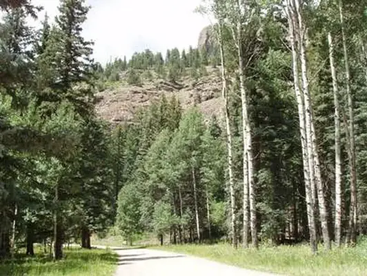 This campground actually had spigots that connected to hoses so you wouldn’t have to carry buckets of water across camp and even uphill like the other 3 campgrounds with corrals in Colorado on this site. Palisades had level parking areas for trailers, 12’ x 24’ pens, manure rakes, buckets, and dumpsters, campfire/grills and a picnic table. There’s also a pit toilet and a big community stock tank in the middle of camp (but it was empty the beginning of June when I was there). The campground host hadn’t moved in yet, but a host from another campground checked in daily. There’s a beautiful running river next to camp, a marshy area I explored beside it, and 2 trails that go straight uphill (from 8300’) that can be accessed without trailering. The climbs were very steep for my “flat lander” horse. Trout and elk abound. I had the place to myself 3/4 days.