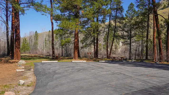 Beautiful spot right on the river. Some highway noise but not bad. Bathroom was clean. Camp hosts were friendly. We were there in early July and there were a lot of mosquitoes. Come prepared.