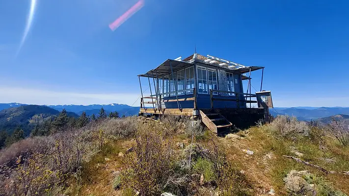 Starting in Jacksonville, drive on Highway 238 west 8 miles to the town of Ruch. Turn left on Upper Applegate Road and proceed 10.2 miles to Forest Road 20, (Beaver Creek Road). Turn left and go 4.1 miles to the junction of Forest Road 20 and Forest Road 2010 (Hanley Gulch Road). Turn right and go 5.1 miles to the junction of Forest Road 2010 and Forest Road 2010/350. Open the locked gate with the combination on your reservation slip, and re-lock the gate behind you. Go 1 mile to Acorn Woman Peak Lookout.