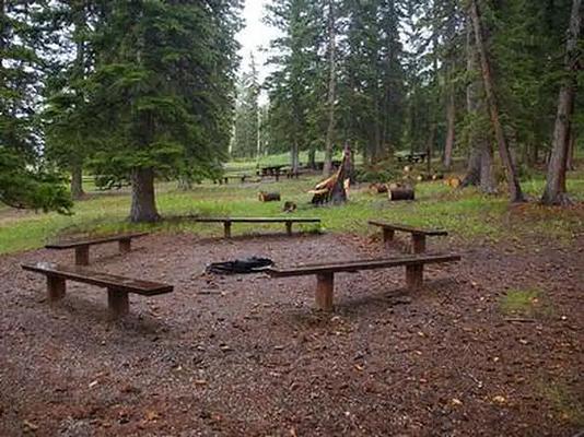 The reserved camping site includes the dispersed area on either side of the fenced in area (containing the picnic tables, benches, fire rings, and water pump). |